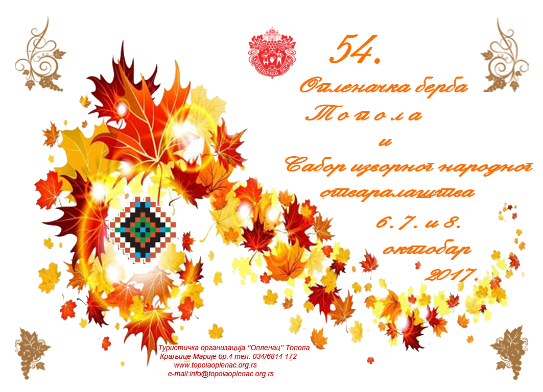 54. Опленачка берба Топола и Сабор изворног народног стваралаштва 6. 7. и 8. октобар 2017